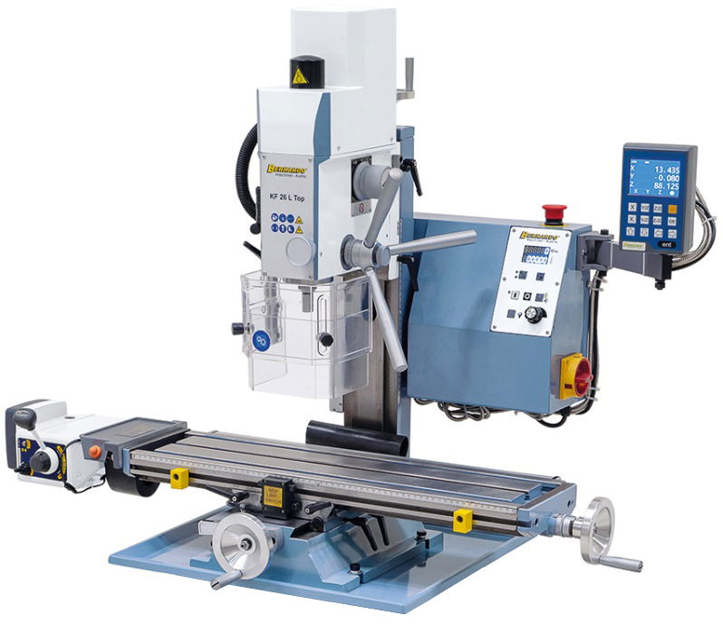 • Fokozatmentes maróasztal-előretolással és DT 40 3-tengelyes digitális kijelzővel.